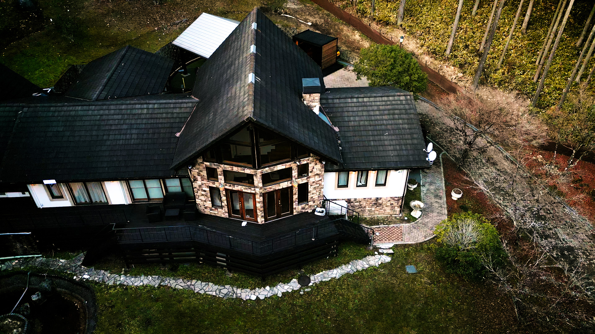 敷地面積は裏山込みで約3000坪。木々に囲まれた広大な自然の中、日本カモシカが姿を見せることもあるほどの豊かな環境です。